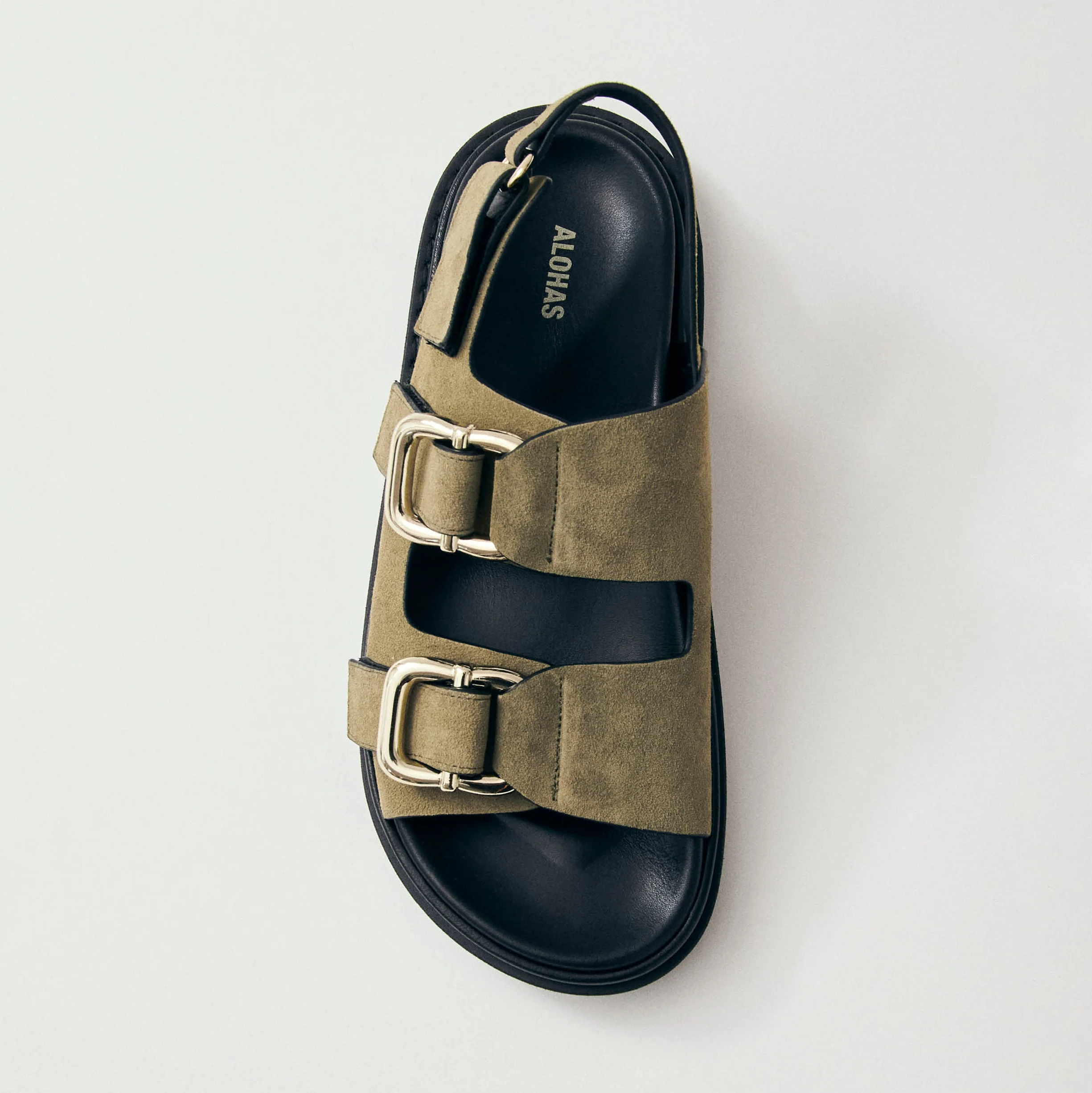 Khaki suede chunky sandals with buckle straps