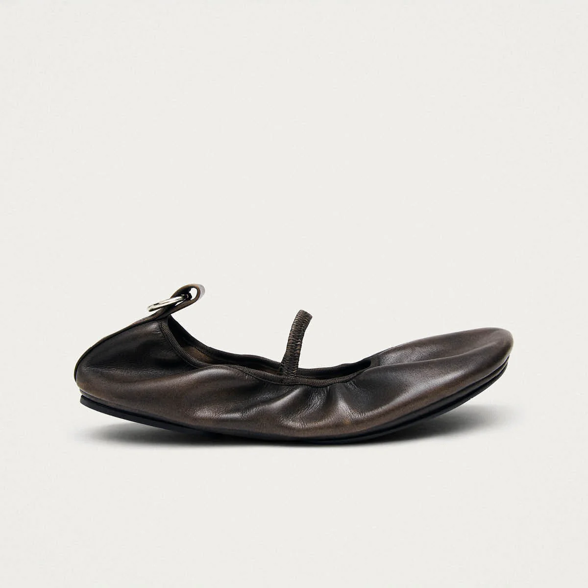 Brushed brown leather barefoot ballet flats with metal ring detail
